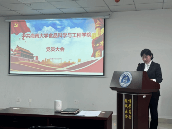 2月21日下午,海南大学食品科学与工程学院在610会议室召开党员大会,听取中共海南大学食品科学与工程学院第三届委员会工作报告,并选举产生了中共海南大yl7703永利第四届委员会。会议由学院院长张家超同志主持。