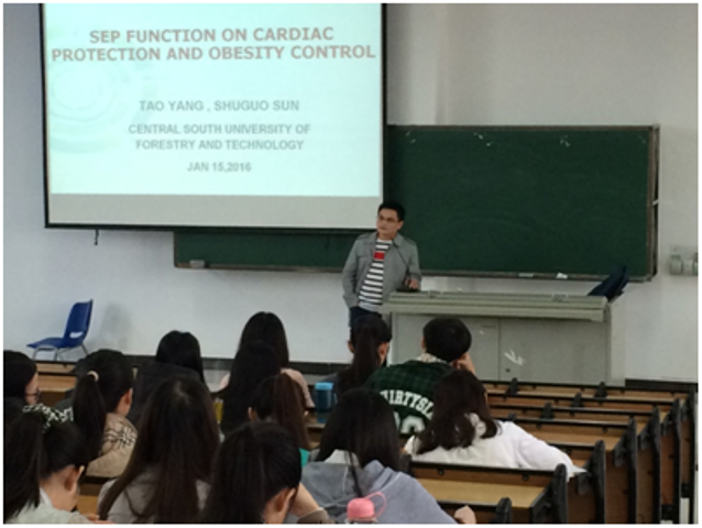 1月15日上午,中南林业科技大学yl7703永利副院长杨涛副教授,在5教414为我院食品科学与工程专业2013级学生讲授《食品营养学》。食品学院申铉日副院长为杨涛老师颁发“海南大学2016冬季小学期授课外聘专家”证书。学院部分专业教师和研究生聆听了杨老师的授课。