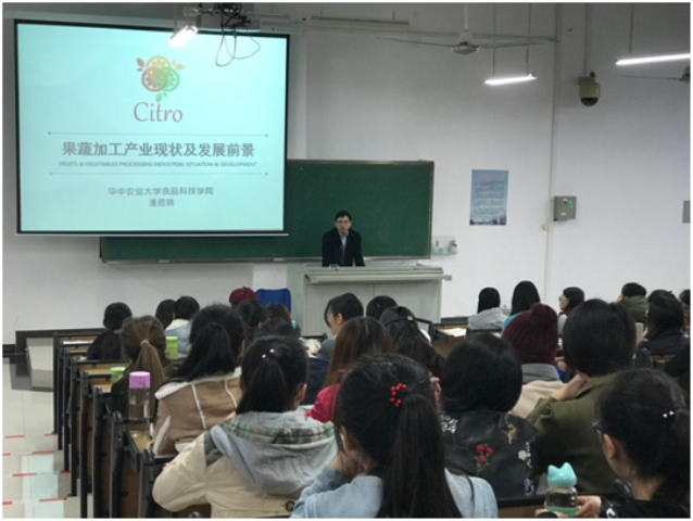 2018年1月9日,华中农业大学潘思轶教授应我院邀请为食品科学与工程专业2015级学生进行冬季小学期授课,授课当天学院副院长申铉日、肖娟、向东老师等110余名师生出席开课仪式。