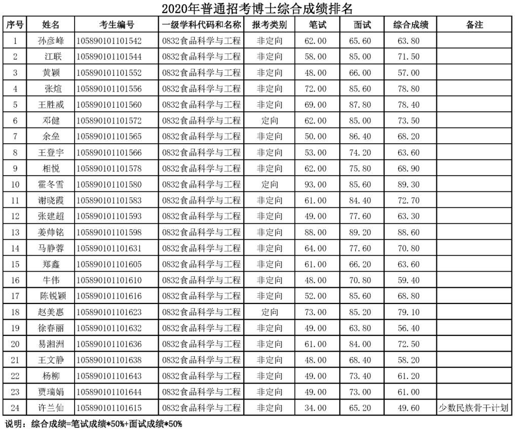 yl7703永利2020年博士普通招考综合成绩公示