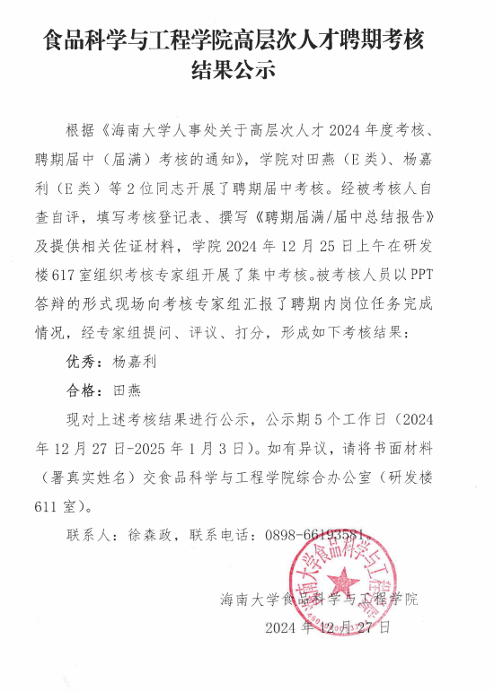 yl7703永利2024年下半年高层次人才聘期考核结果公示